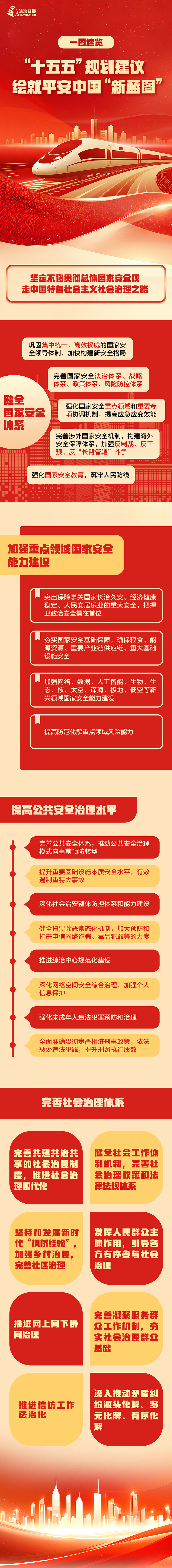 党的二十届四中全会审议通过的《中共中央关于制定国民经济和社会发展第十五个五年规划的建议》,在“十四五”时期平安中国建设成效基础上,锚定“国家安全屏障更加巩固”的目标,以总体国家安全观为指引,勾勒出更高水平平安中国的发展路径。