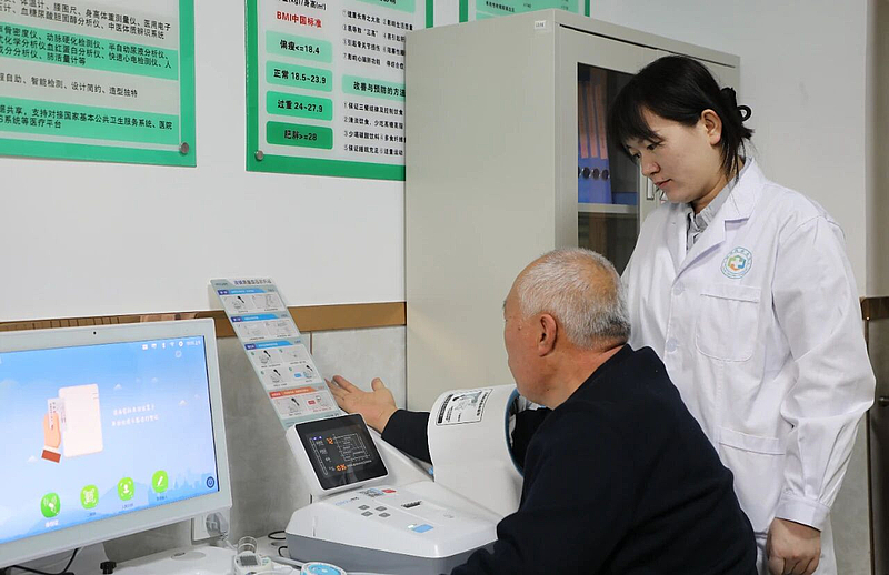 医护人员为老人进行健康检测