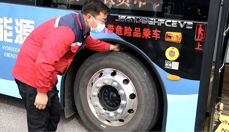 活动现场,1辆氢能源公交车、1辆纯电动公交车与40辆私家车、85辆自行车在一条5公里城市环线道路上同场比拼。通过对道路资源占用率、通行效率和碳排放三项模拟指标进行测算并公布结果,在人均道路占用面积方面,公交车约为小轿车的二十七分之一,约为自行车的六分之一;氢燃料与纯电动公交车的直接碳排放量为零,而燃油小轿车百公里碳排放量约达22.6公斤。此外,1辆公交车可轻松载客73人,2辆公交车的运力即可替代约100辆小轿车。这些数据充分体现了公交车在经济性、环保性方面的显著优势,尤其在出行高峰和易拥堵路段,公交出行的高效与便捷更为突出。