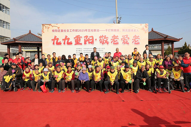 10月29日,榆阳区委社工部联合多方力量,以“千灯照晚晴、照亮困境老人”为主题,在驼峰路街道金华路社区开展“九九重阳·敬老爱老”活动,为辖区60名困境老人送去节日温暖与关怀。