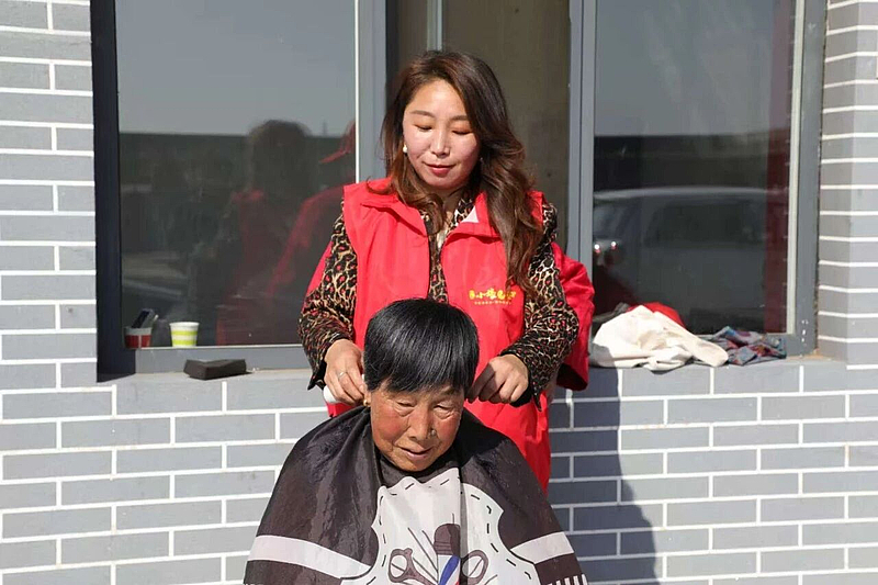 活动现场,米面油、棉衣等物资井然有序地摆放着,工作人员为老人们逐一发放棉衣等御寒物品,关切地询问他们的身体状况和生活需求,并叮嘱大家注意添衣保暖、保重身体。在温馨的氛围中,大家一起为老人们切蛋糕,共同欢庆重阳佳节。志愿者还为老人们提供免费理发服务,老人们看着镜子里精神焕发的自己,纷纷露出满意笑容。