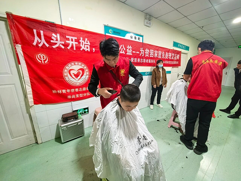 榆阳“爱心理发店”:十年公益路 坚守送温情 2025-11-20十年初心不改,公益服务暖人心。近日,在榆林高新医院内,一场特殊的“爱心理发”志愿服务正在温情展开。榆林青年慈善志愿者服务队——崇尚发型分队的志愿者们,用专业手艺为住院患者解决“头等小事”,让就医环境里满是暖意。