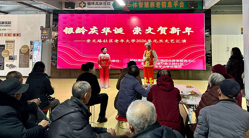 2025年12月30日,榆林高新医院崇文路综合养老服务中心内欢歌笑语不断,一场热闹的庆元旦文艺演出正在上演。