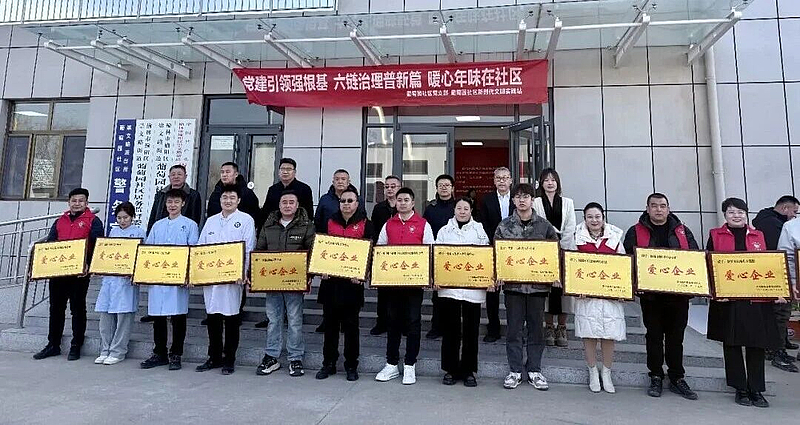 活动现场暖意融融、氛围浓厚。社区及共建单位代表为困难群众逐一送上米、油等生活物资,切实解决困难群众的实际需求;同时,为13家积极投身公益、助力社区发展的企业颁发“爱心企业”奖牌,凝聚社会力量共建美好家园。在义诊专区,医护志愿者有序为居民提供血压血糖检测、中医理疗、健康咨询等服务,耐心解答居民关于慢性病管理、冬季养生等他们关心的问题,以专业服务筑牢居民健康防线。随后,热气腾腾的杀猪菜端上餐桌,共建单位代表与居民群众围坐共餐、闲拉家常、共话发展,欢声笑语间尽显“邻里一家亲”的和谐景象。