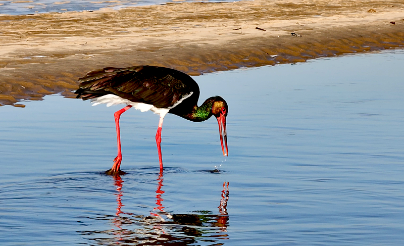 环境好不好 鸟儿最知道!“鸟中大熊猫”黑鹳在榆林安家 2025-11-27初冬的榆溪河,一群身披墨羽、喙色朱红的精灵,或驻足静立,或低首觅食,肩背的羽毛在阳光的照射下呈现出绚丽色彩……11月19日,47只“鸟中大熊猫”黑鹳以集群姿态现身榆林城郊的榆溪河畔,用灵动的身影为这座城市写下生态注脚。