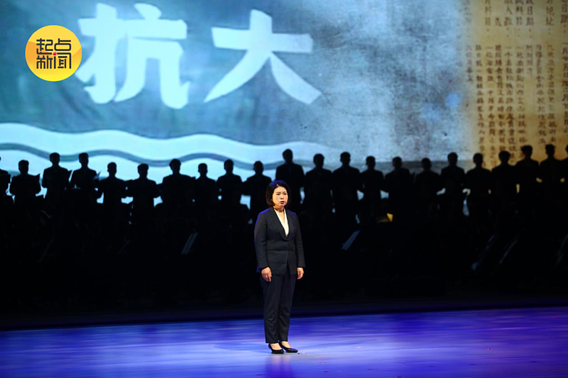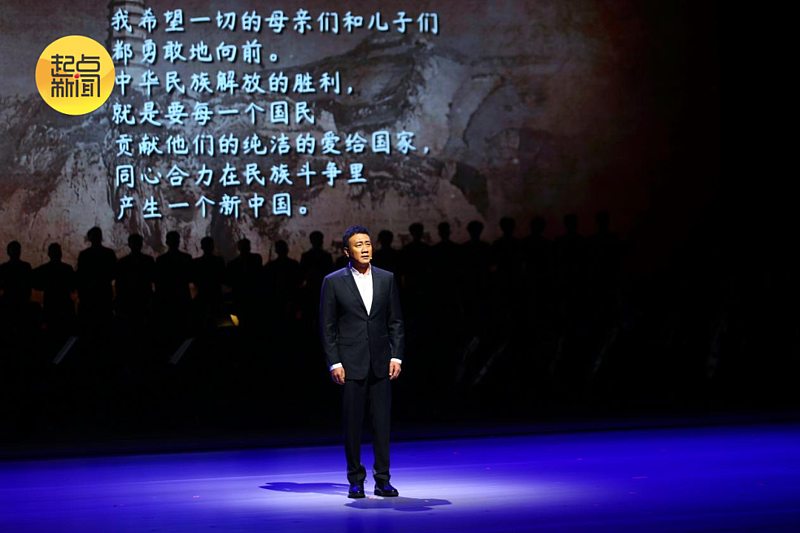 △在“胜利之声”篇章中,中国传媒大学教师李立宏朗诵《八路军出师抗日誓词》。