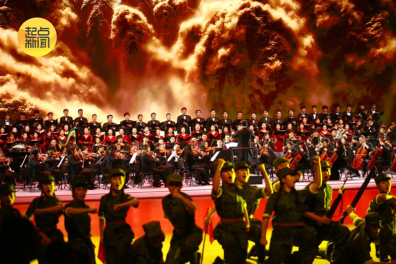 △西安交响乐团、西安交响乐团合唱团、延安大学鲁艺合唱团与全场观众共同奏唱《抗日军政大学校歌》。