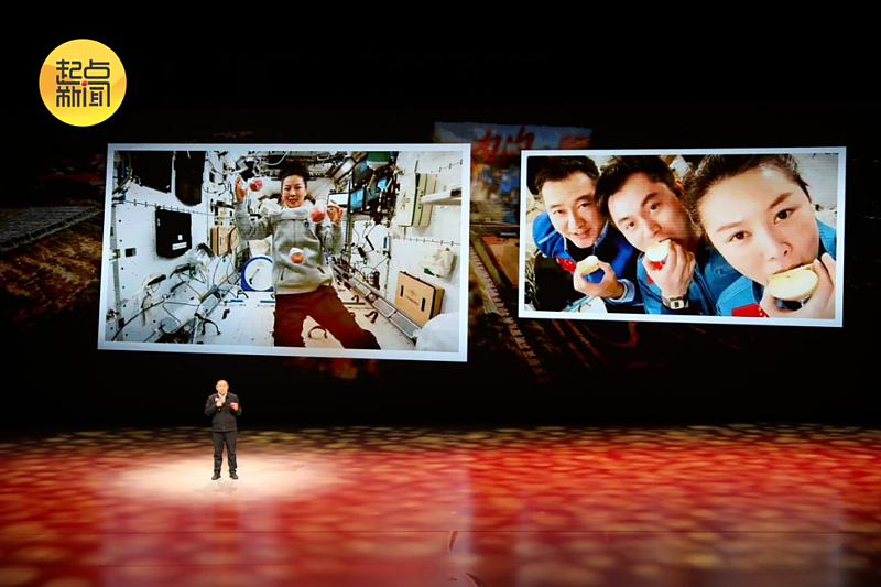 △ 延安市安塞区南沟村原驻村干部张光红分享了延安苹果“飞”上太空的喜讯,神舟二十号乘组在中国空间站向活动送来美好祝愿。