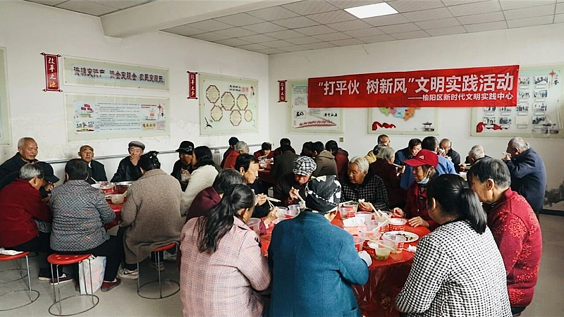 活动现场开展了丰富多彩的文明实践活动。通过理论宣讲、政策解读、农技培训、健康检查、爱心义剪及农产品展示等多种形式,为村民提供了贴心服务,营造了爱老敬老、惠民利民的浓厚氛围。活动还特别设置了“打平伙树新风”环节,村民们共享美食、互动交流,有效增进了干群关系、邻里和谐。同时,陕北说书表演贯穿全程,以群众喜闻乐见的形式宣传孝亲敬老理念,弘扬文明新风。