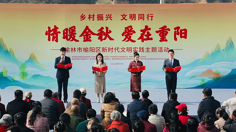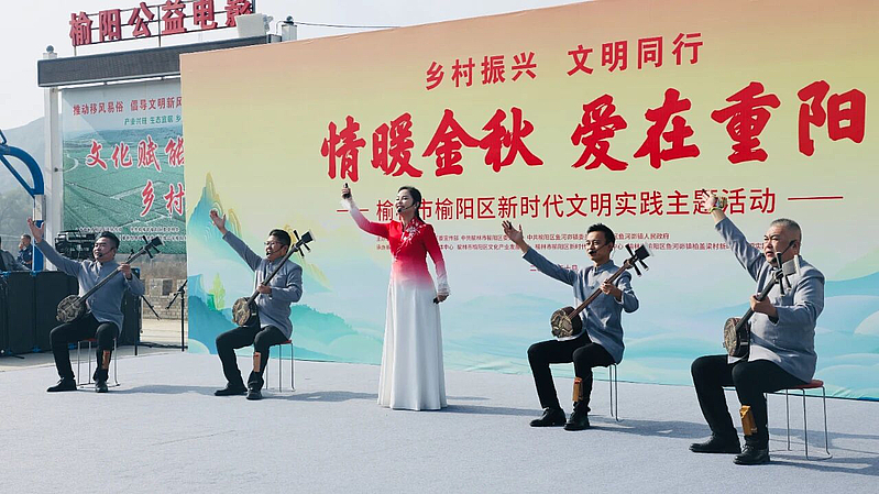 随后的文艺节目精彩纷呈,演出分为“九九重阳 敬老惜长”“秋暖乡韵 情满重阳”“筑梦沃土 振兴华章”三个篇章依次展开。开场舞《和谐盛世》点燃全场热情,歌曲《越走路越宽》、快板舞《新风尚》、陕北说书《新农村弘扬新风尚》等节目轮番上演,展现了新时代农村文化生活的繁荣与活力。朗诵《大美榆阳》和歌曲《“榆”你同在》等节目,深情表达了榆阳人民对家乡的热爱与祝福。