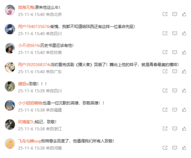 @可乐鸡翅包饭凡:我们从小听他的故事长大,他是我们陕北的英雄啊!没想到全网好多人都不知道他,心里还挺不是滋味的,希望更多人能了解他的事迹。