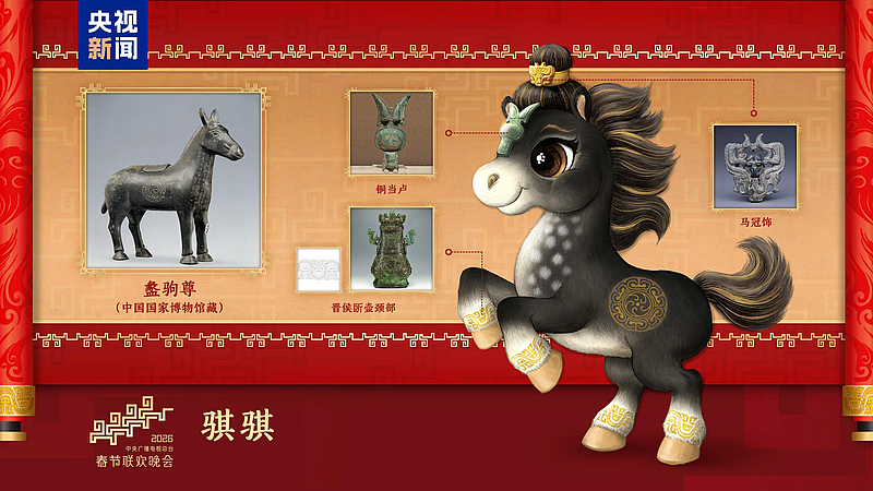 四匹骏马齐亮相,骐骥驰骋踏新程!12月18日,中央广播电视总台《2026年春节联欢晚会》发布吉祥物形象。“骐骐”“骥骥”“驰驰”“骋骋”四匹骏马,活泼可爱、意气风发,与晚会主题“骐骥驰骋 势不可挡”一脉相承、相得益彰。吉祥物的设计灵感来源于中国不同时期马的经典形象,并将流云纹、山云纹等千年纹样“穿”上身,充盈着生生不息的历史美感和万象更新的时代气象,饱含马到成功、前程似锦的美好寓意。