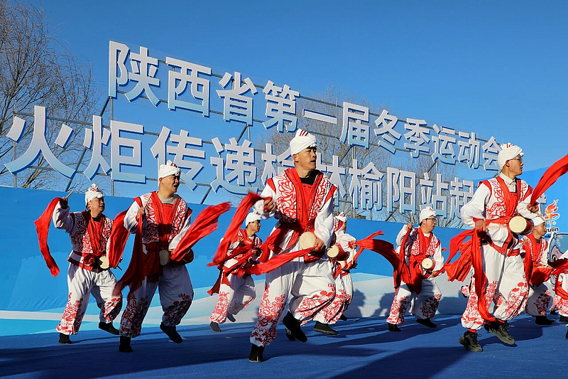 沿途最具榆阳特色的群众文艺表演也成为火炬传递中靓丽的风景线。豪放欢腾的陕北大秧歌扭出了黄土高原的磅礴气势、非遗传承人的陕北说书声情并茂、曲调清雅的榆林小曲悠然响起,生动诠释了榆阳区深厚的历史和文化底蕴。火炬手的每一步奔跑,都播撒着“更快、更高、更强、更团结”的体育火种,传递着“逐梦冰雪,陕耀未来”的坚定信念。