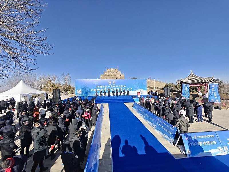 1月10日上午,陕西省第一届冬季运动会火炬传递第二站活动在榆林市榆阳区举行。95名来自各行各业的火炬手接力奔跑11.2公里,将火炬从河滨公园传递至万里长城第一台——镇北台。