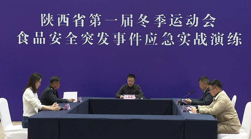 1月9日,陕西省第一届冬季运动会食品安全突发事件应急演练在榆林会展中心举行。