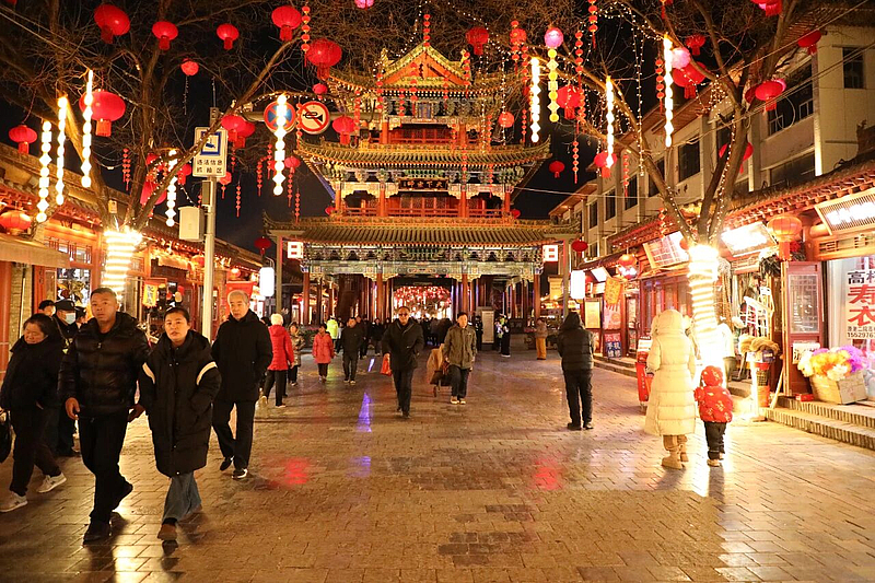 古城街巷中,非遗展演精彩纷呈。清涧道情高亢悠扬,榆林小曲婉转细腻,陕北说书声情并茂,生动讲述陕北故事,为冰雪装点的古城增添浓郁的文化气息。