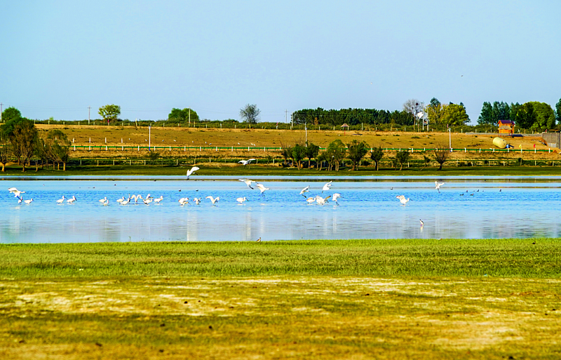 湿地鸟鸣,沙海焕新生 2025-10-17通过地形改造,榆林市榆阳区河口水库打造了深浅各异的水域和滩涂,为不同习性的水鸟提供了多样化的栖息之所;沿岸补种的芦苇、香蒲等本地水生植物,不仅有效稳固了岸线、净化了水质,还为鸟类提供了天然的觅食之地和隐蔽空间。
