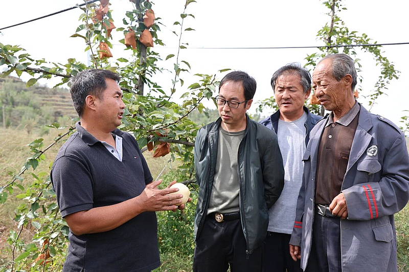 除了丰产的玉露香梨,任子长的其他农产品同样长势喜人。150多亩山地苹果已进入挂果关键期,工人们正忙着为苹果“脱袋”——小心翼翼地扯掉套在果实外的双层果袋外层,让苹果充分接触阳光,积累糖分、沉淀色泽。700亩的高粱长势旺盛、穗粒饱满,1000多亩黄芩郁郁葱葱、叶片鲜嫩……这些产业不仅让农场实现多元增收,还复耕撂荒土地,真正做到了“增产、增收、增效”,让村民们在家门口就能分享产业发展红利。