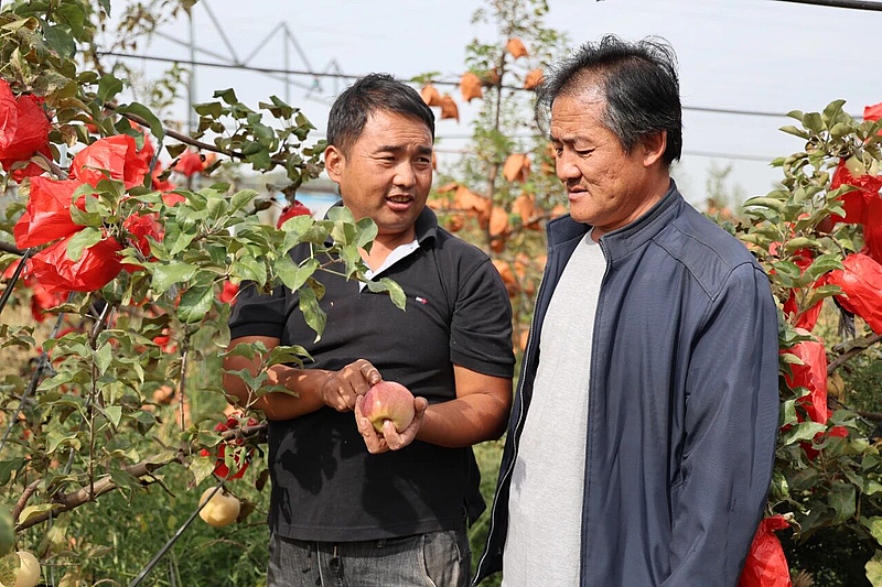 “现在日子比以前好多了,在自家门口的农场就能干活挣钱!平时可以来打零工,给山地苹果浇水、拉枝、除草、套袋,一天下来能挣200元。这样既不耽误照料自家的农活,也能得到一笔可观的收入。”姬家坡村村民任海普说。