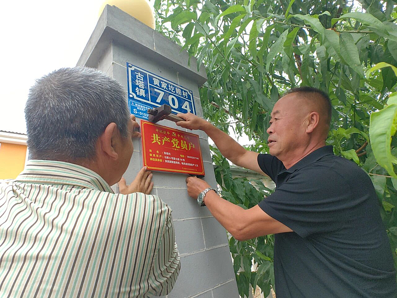 秋雨淅淅沥沥,走进古塔镇黄家圪崂村,一幢幢别墅整齐排列,道路两旁的树木更加青翠欲滴,雨雾缭绕,一幅生机盎然的乡村画卷正缓缓铺展。为了创新开展“党员挂牌、包户联心、设岗定责”活动,黄家圪崂村党支部书记任润堂正在为村里的党员一一悬挂“共产党员户”标识牌。记者看到,红色的牌匾上标明了党员的姓名、电话、联系农户、岗位及承诺,挂在门前格外醒目,这不仅是党员家庭的“荣誉牌”,更是党员发挥作用、践行使命的“承诺书”。
