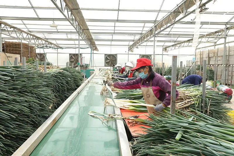 “我今年租种了150亩地,春季种了100亩胡萝卜,7月20日全部收完以后又种了大白菜和莲花菜,一亩莲花菜可产八千多斤,大白菜亩产能达到一万四千多斤。还有50亩种了白葱。今年是第一年试种,目前已经开始采收,产量能达到每亩地两万斤,一斤能卖0.8元。”种植户姚广云说。