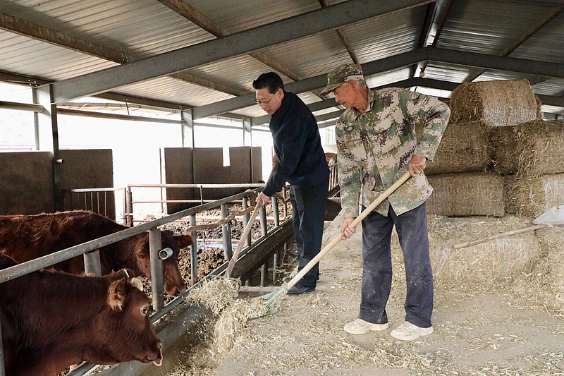 “我们村采取‘合作社+农户’的养殖模式,60户村民集中养殖60多头牛、300多只羊,合作社有40多头牛、200多只羊,全部进行统一饲养、管理、售卖,这种模式能够有效减少饲养成本,方便经营管理,而且实现了经济效益的最大化。”曹宏忠说。