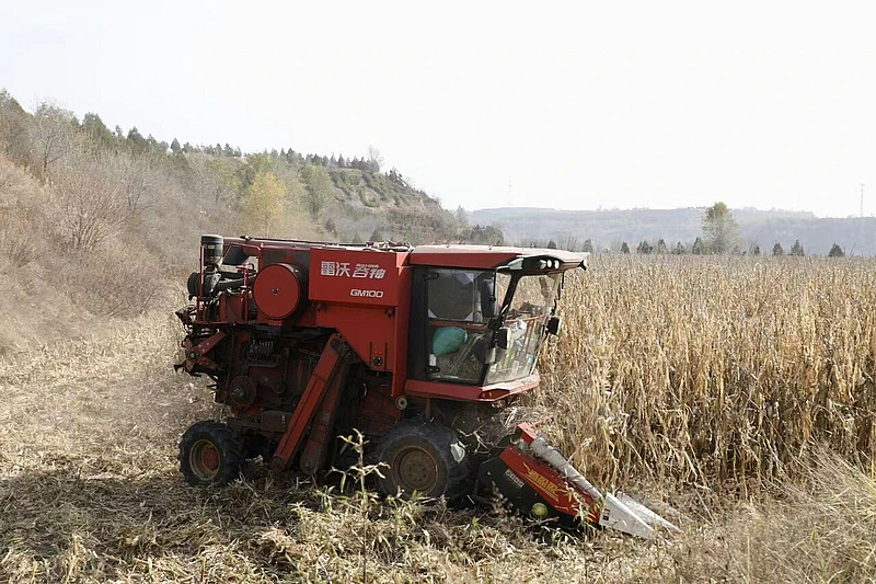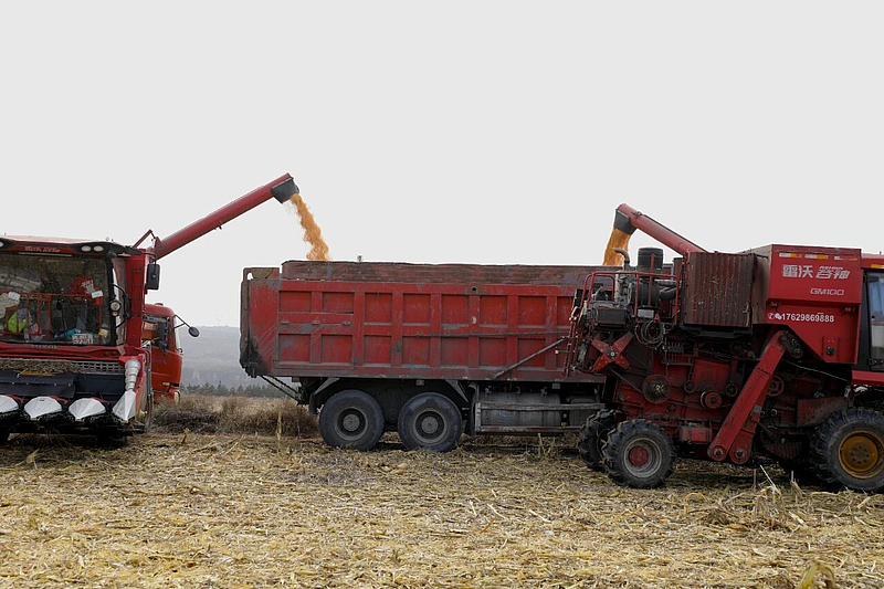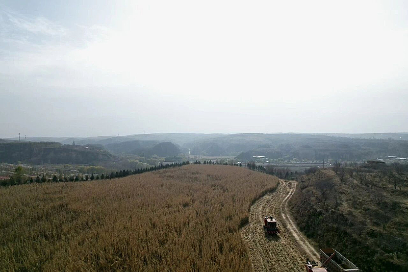 “今年,我在黄家圪崂村租了800多亩地,种了糜子和玉米,其中玉米亩产能达到2000斤,收完以后的秸秆还可以打包成捆,卖给养殖场用作饲料,收成还是很不错的。”种植户马克瑞说。