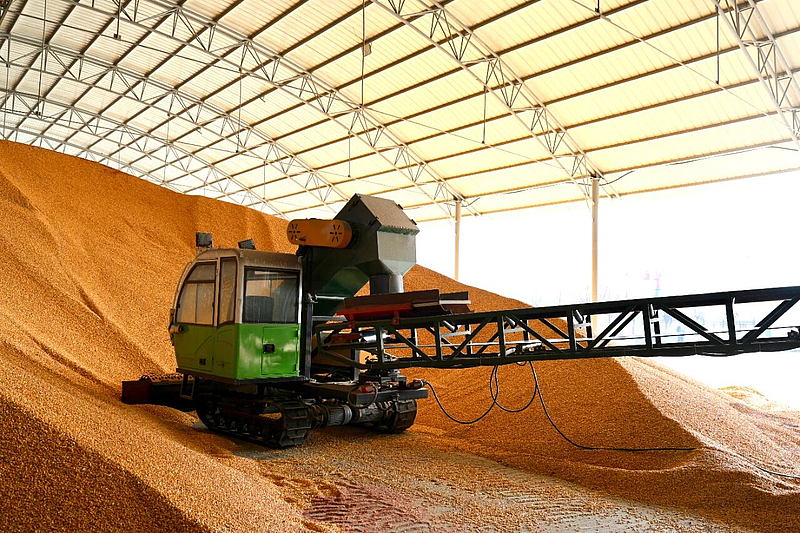 在小壕兔乡玉米烘干中心,机器轰鸣声此起彼伏,各类设备正高效运转。运输车辆停靠在液压卸车平台,玉米经传输带输送至指定区域后,通过扒粮机送入湿粮仓暂存。之后,湿粮被送入烘干塔,经4-5小时精准烘干,达标的玉米便通过传输带进入储粮区,整个流程衔接顺畅、高效便捷。同时,玉米烘干中心还配备了专业化验室,工作人员会对每批次玉米进行水分测量、毒素含量检测,依据检测结果为玉米分类、划分用途并制定合理价格。