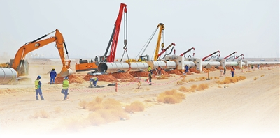 沙丘连绵起伏,管线像银色的丝带在沙脊间延展——沿着沙特首都利雅得西部沙漠里的超大口径天然气管道驱车前行,沙特工程师哈比卜·萨巴告诉记者:“这就是我们正在建设的天然气输送大动脉。这项工程意义重大,也让我们年轻人有了更多成长机会。”