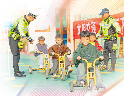 湖北省宜昌市秭归县交管大队民警走进当地幼儿园,传授交通安全知识,帮助孩子们提高交通安全意识。