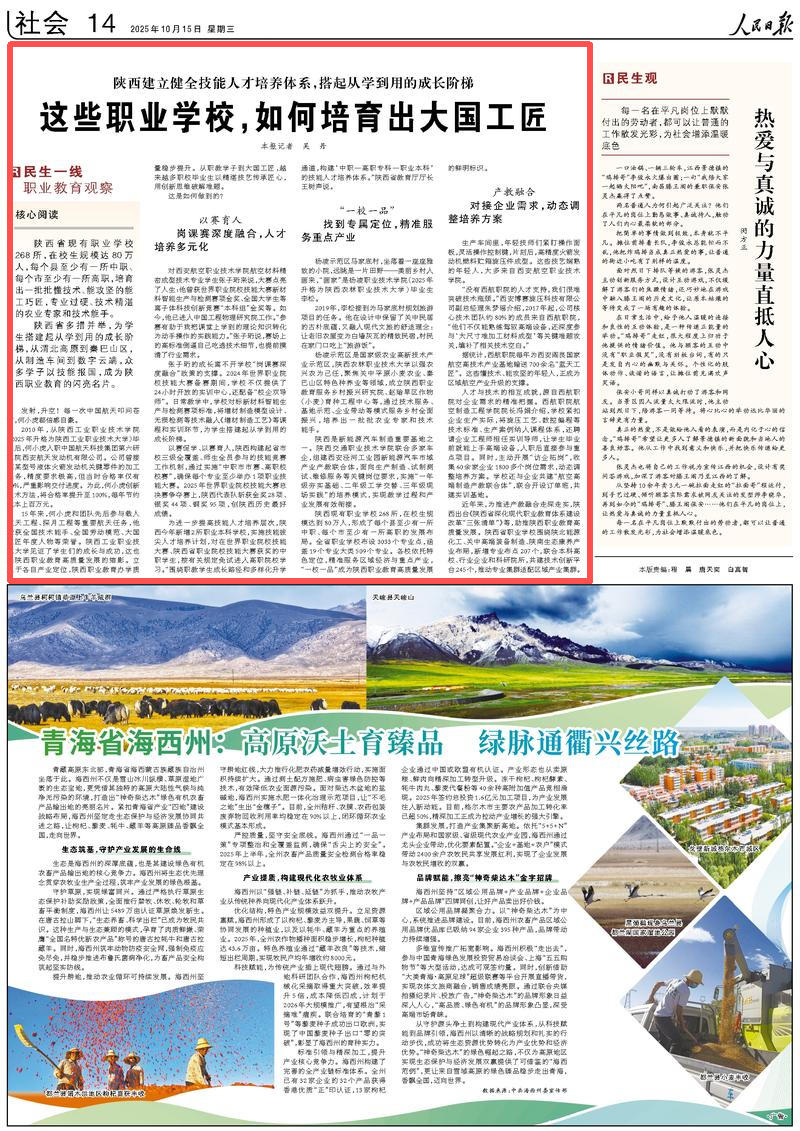 人民日报看陕西丨这些职业学校,如何培育出大国工匠 2025-10-15 -