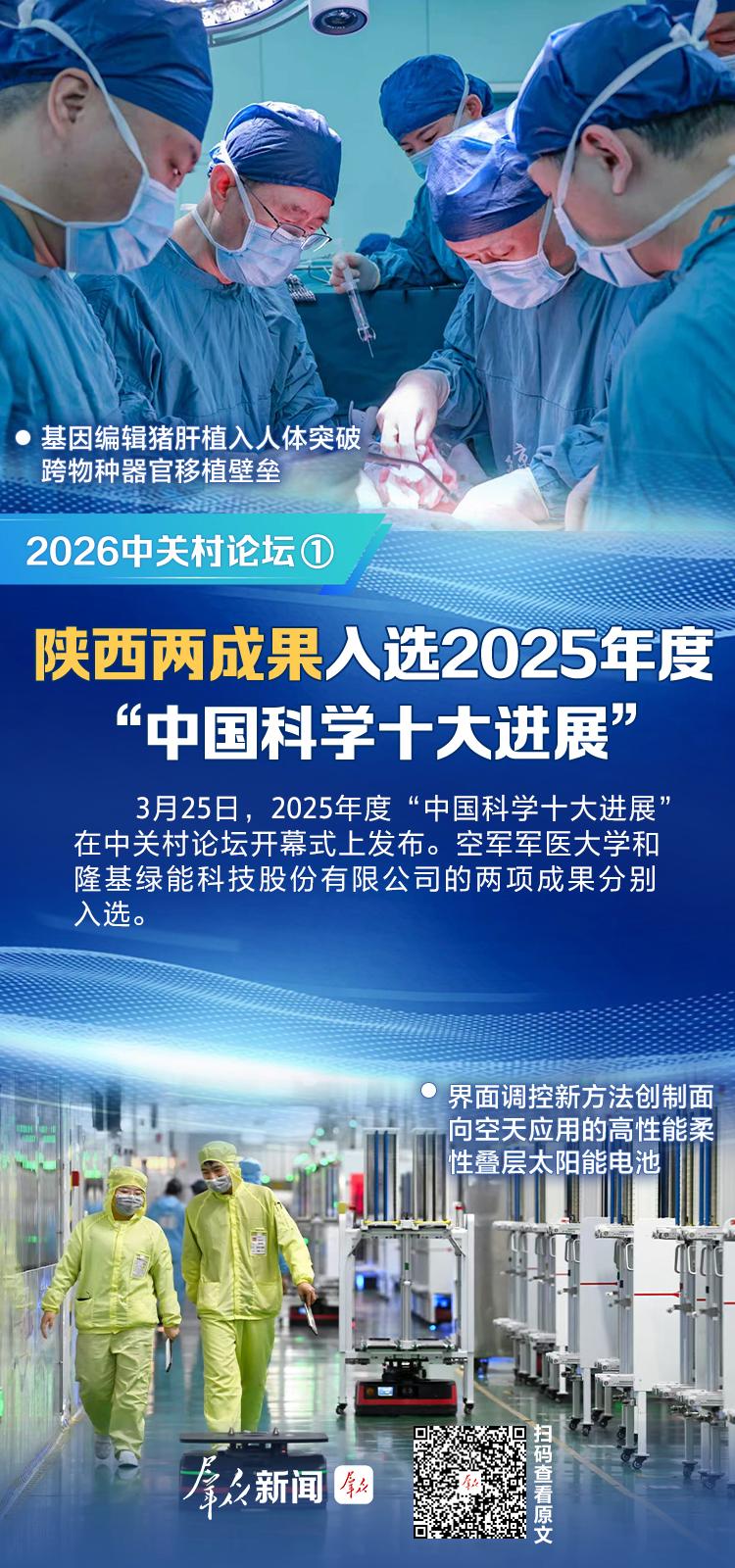 3月25日,2025年度“中国科学十大进展”在中关村论坛开幕式上发布。空军军医大学和隆基绿能科技股份有限公司的两项成果分别入选。